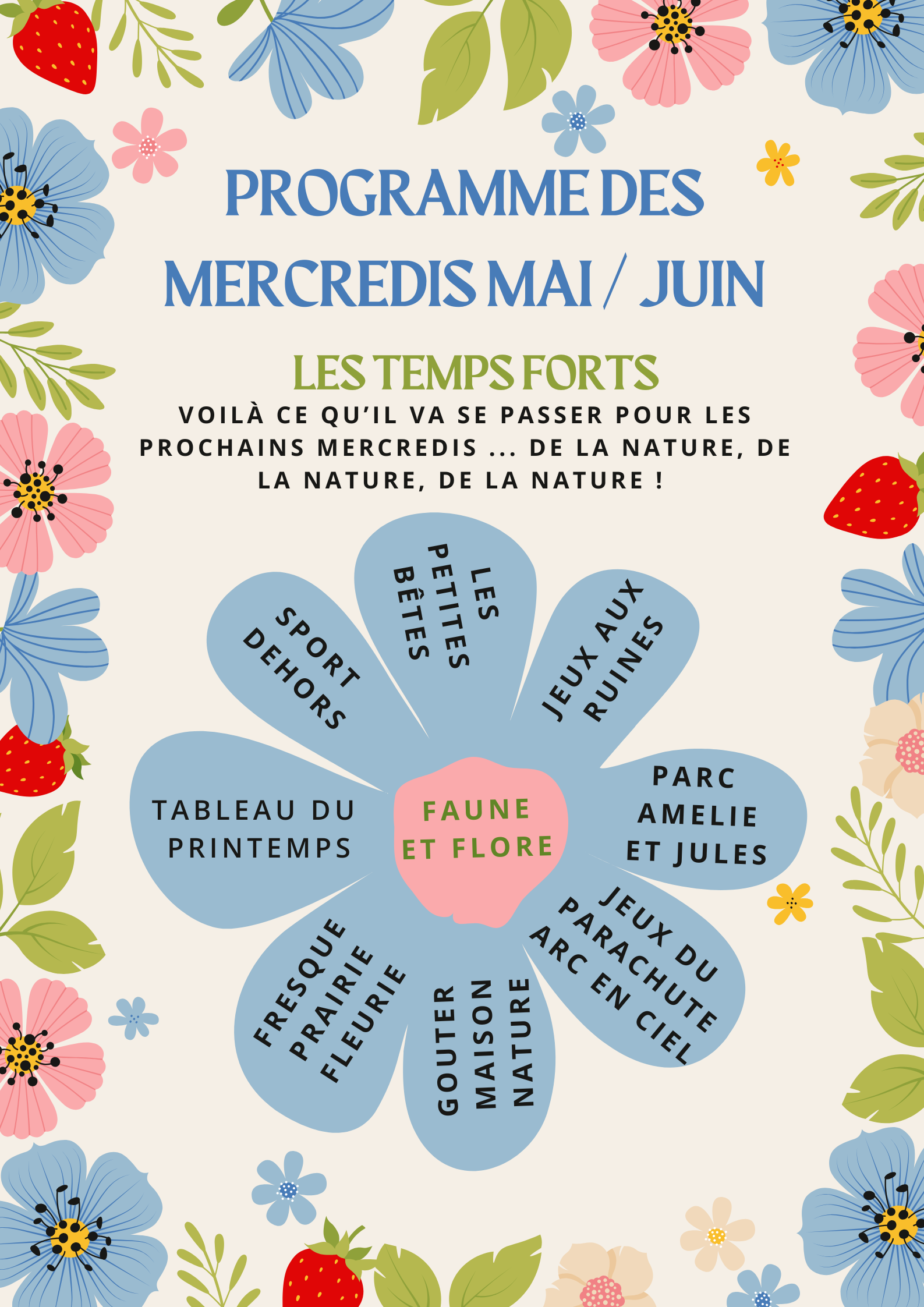 Les inscriptions pour les mercredis d’avril / mai / juin / juillet débuteront le lundi 6 avril à 20h00.